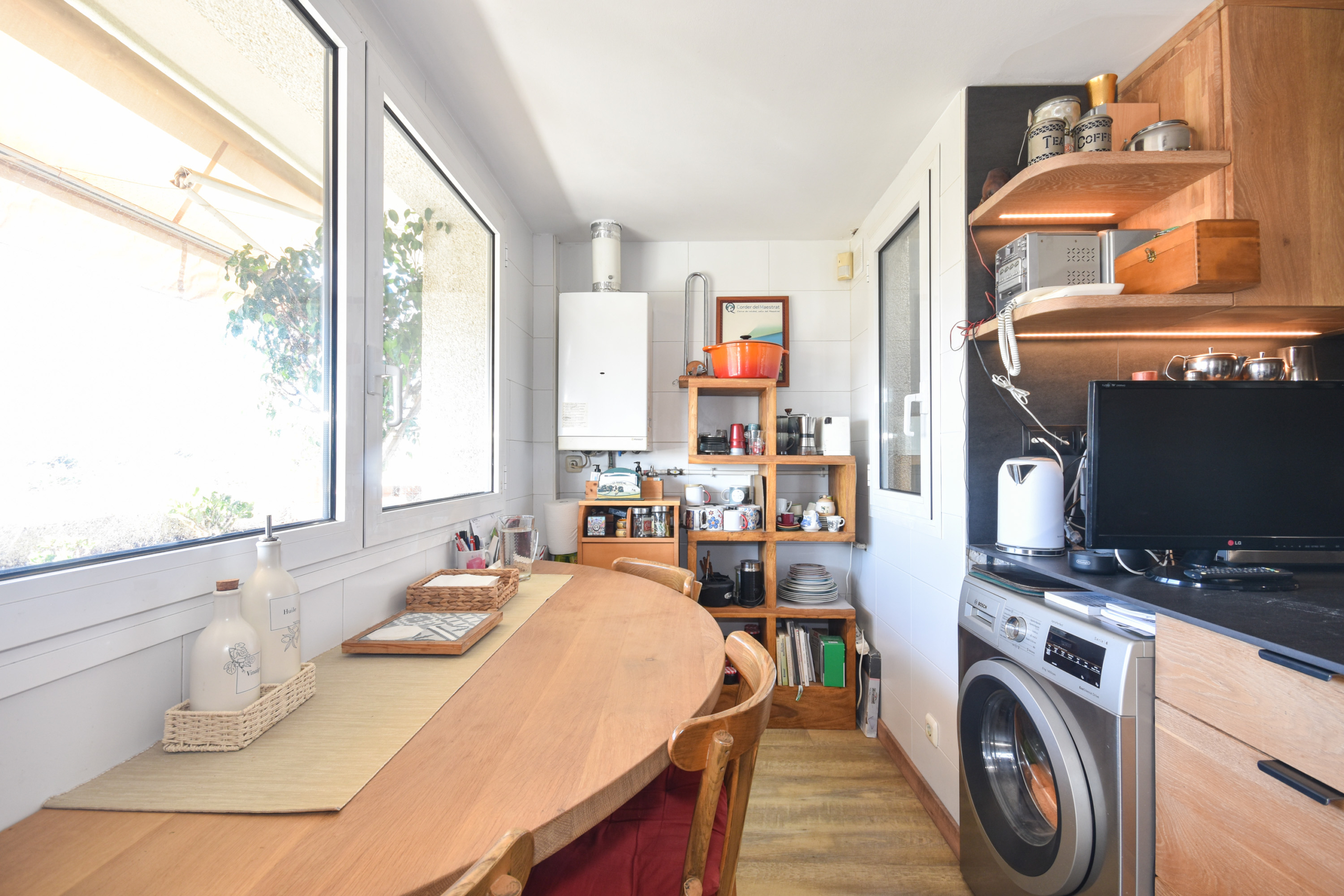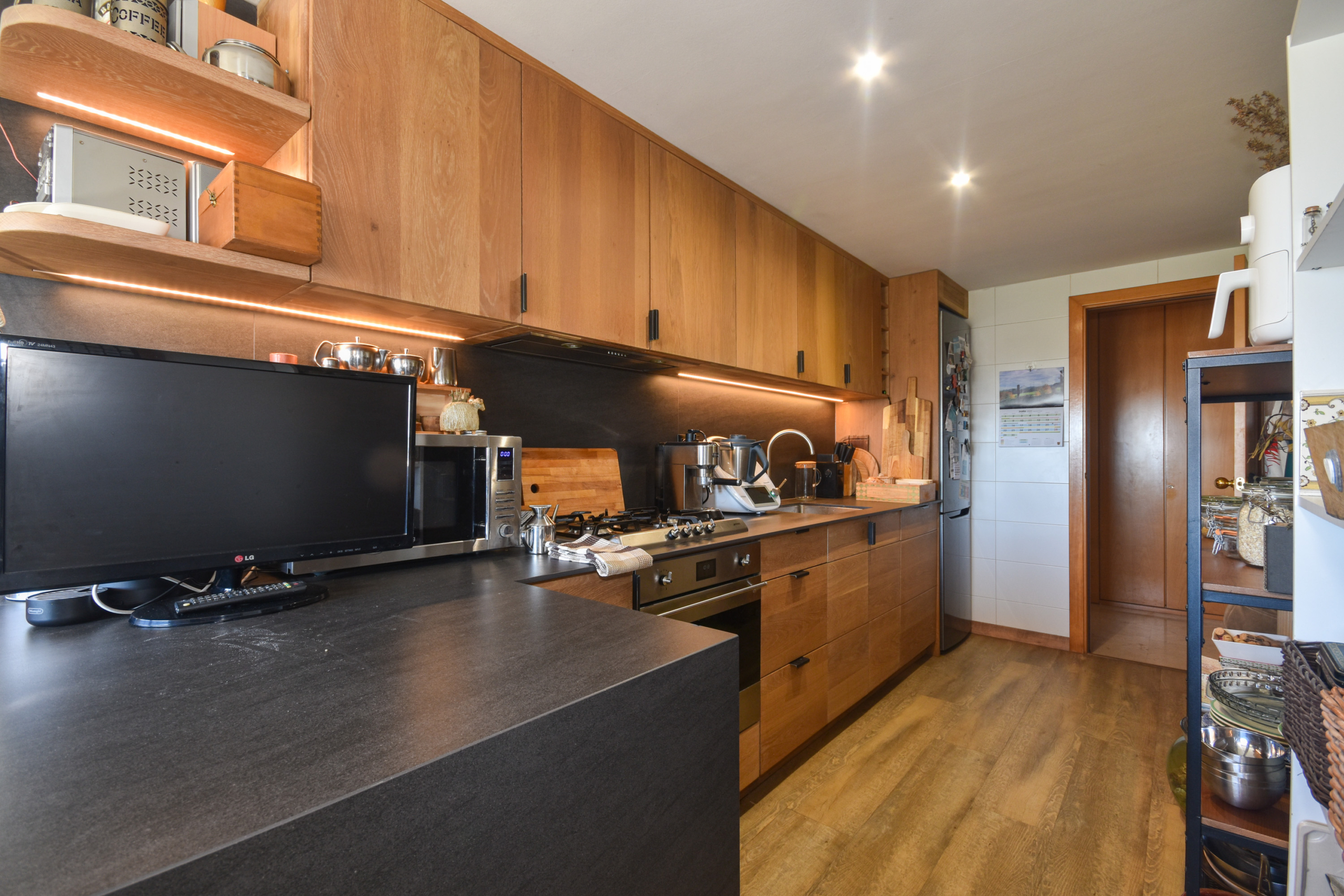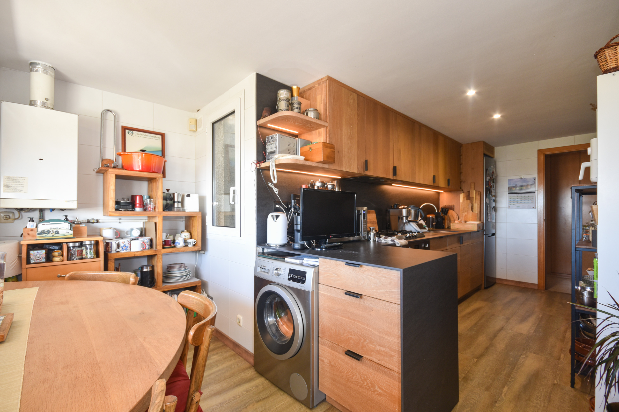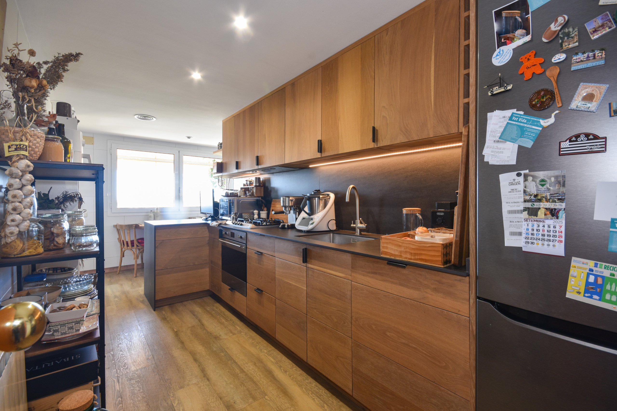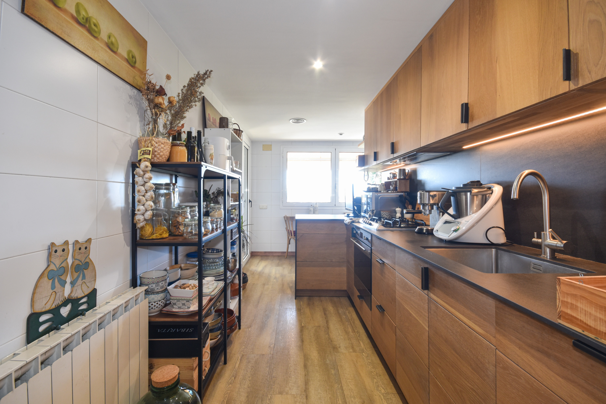 Ideal para disfrutar de la brisa mediterránea. Desde el recibidor accedemos a la cocina, totalmente reformada con materiales de primera calidad y elegante porcelánico imitación parquet. La cocina cuenta con una práctica mesa integrada junto a la ventana con vistas al mar, además de salida a la terraza, perfecta para desayunos soleados.